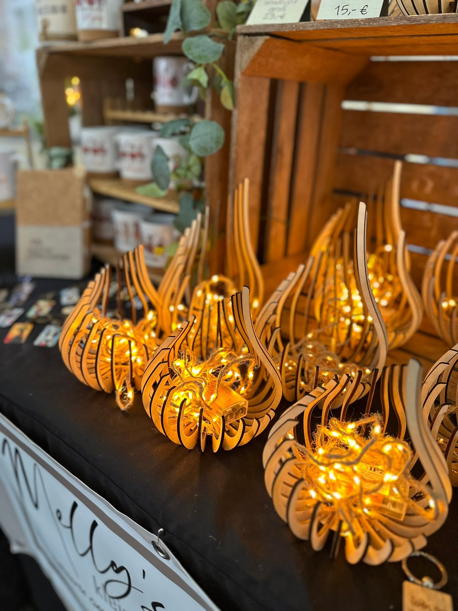 Nur mit Teelichtern oder LED-Kerzen betreiben, keine hohen Echtkerzen verwenden (Brandgefahr)