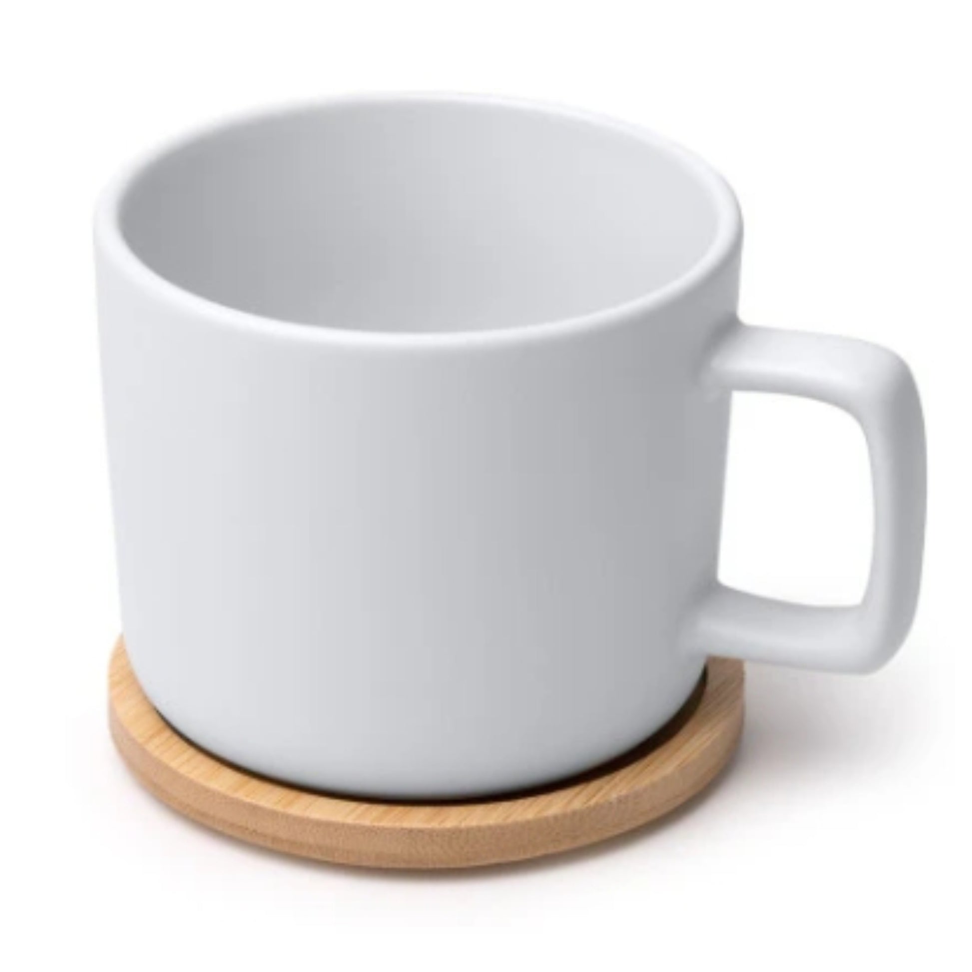 Matte Sublimationstasse MOLOK mit Bambusdeckel, weiß
