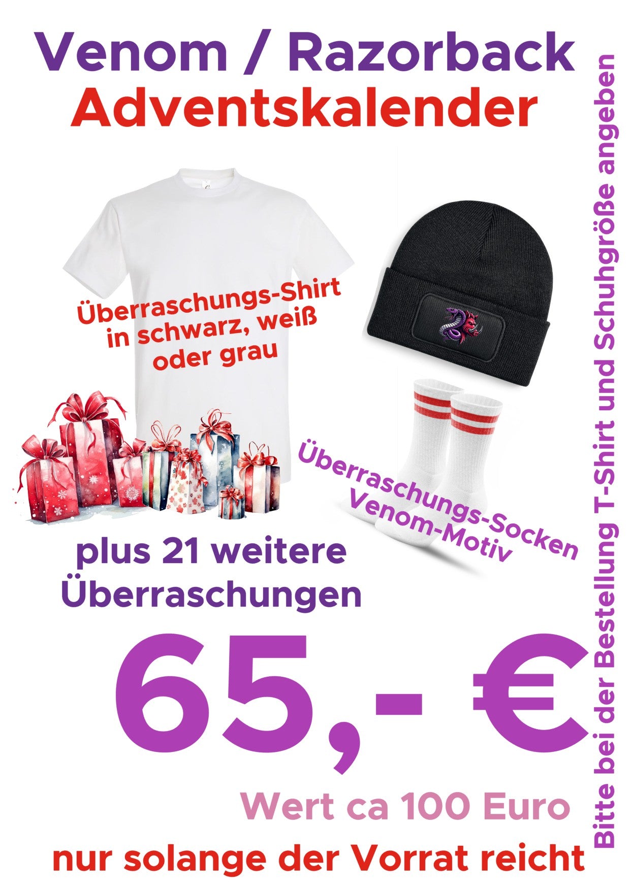 Bitte bei der Bestellung die Shirt- und Schuhgröße angeben
